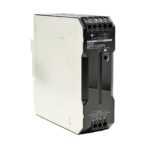 A fonte de alimentação S8VK-C24024 é montada em calha DIN, o que facilita a instalação em painéis elétricos.